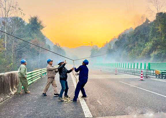 三跨区段因地势杂乱、施工危险高、和谐难度大,一直是电力建造与运维的“硬骨头”。为破解这一难题,国网巴东县供电公司自动牵头,与恩施高速公路办理处树立专项协作机制,两边打破政企壁垒,清晰施工时序与安全职责,为精准办理奠定根底。在切割导线时施行暂时交通管制,确保施工作业安全,防备施工器械、导线掉落等对车辆行人形成安全隐患。